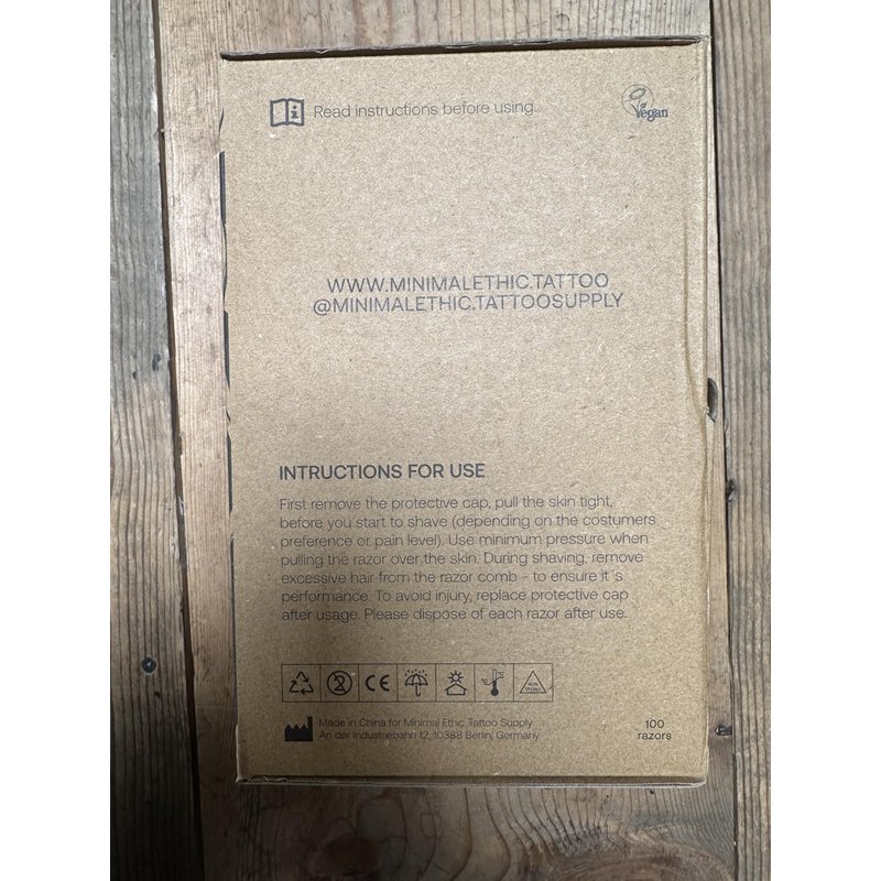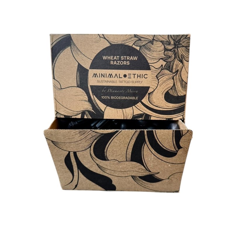 Biodegradable, eco-friendly, unisex disposable double bladed razors in bulk made from wheatstraw. Can be used for personal shaving or preparation for tattoos. Each box contains 100 razors.