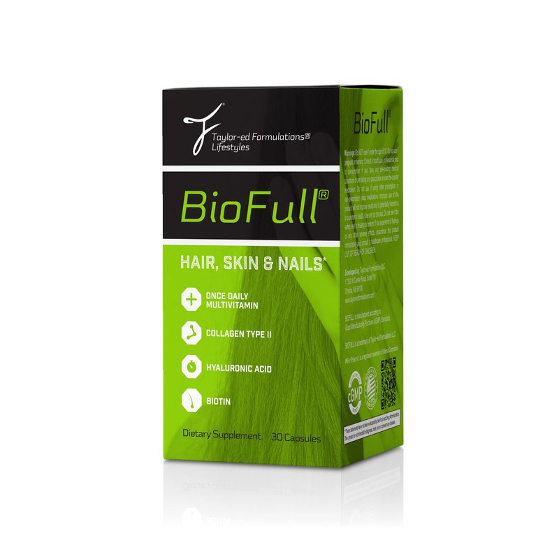 - Collagen helps support skin elasticity for a glowing and youthful look, while biotin helps maintain the optimal skin barrier, hydration, and oil balance. Enjoy a younger-looking appearance with BioFull Hair Skin & Nails!