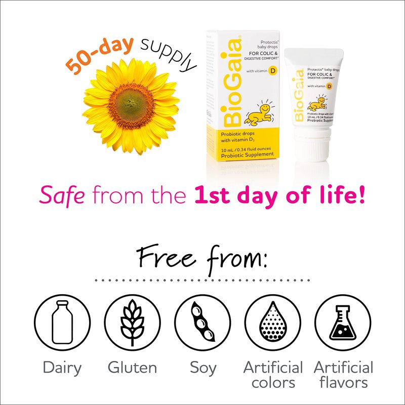 BioGaia is a safe and clinically proven probiotic.* BioGaia, the original probiotic drops for colic & digestive comoft.* BioGaia is a safe and clinically proven probiotic that naturally colonizes the digestive tract and is even found in the milk of breastfeeding mothers. BioGaia has been clinically shown to ease babies digestive discomfort including colic, spit-ups, constipation and diarrhea.* BioGaia has been clinically shown to promote digestive comfort in babies. BioGaia can help with colic, spit-ups, constipation and diarrhea.* *These statements have not been evaluated by the Food and Drug Administration. This product is not intended to diagnose, treat, cure, or prevent any disease.