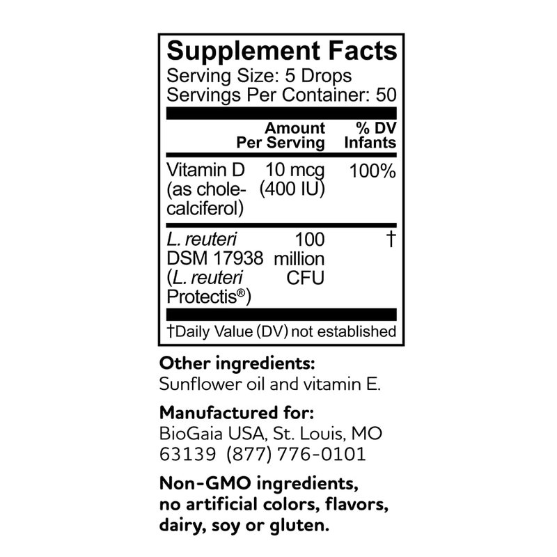 - Just 5 drops daily with an easy dropper tube contains 100 million live L. reuteri probiotics, clinically shown to reduce crying and fussing in colicky infants