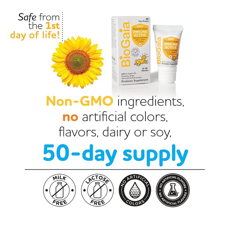 - BABY PROBIOTIC DROPS WITH VITAMIN D: BioGaia Immune Active BABY is a probiotic + vitamin D drop that promotes the healthy development of babies’ immune & digestive systems to build a strong foundation of health*