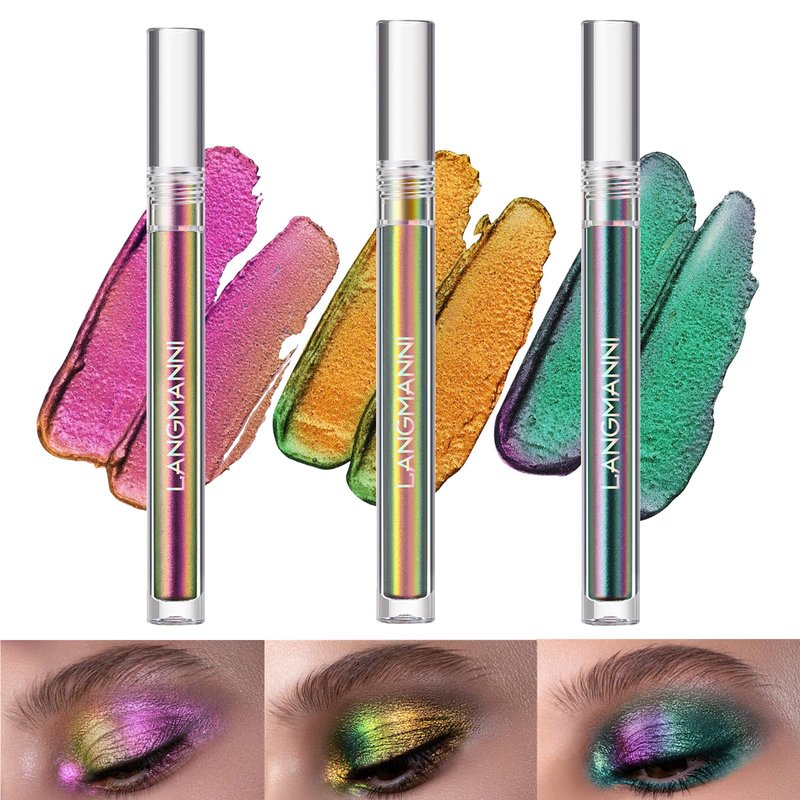 - LIQUID GLITTER EYESHADOW SET: 3 Shades of multi-dimensional shimmer for low effort looks that go off. Inluding Pinky purple, Peacock Green and Chrysoberyl.