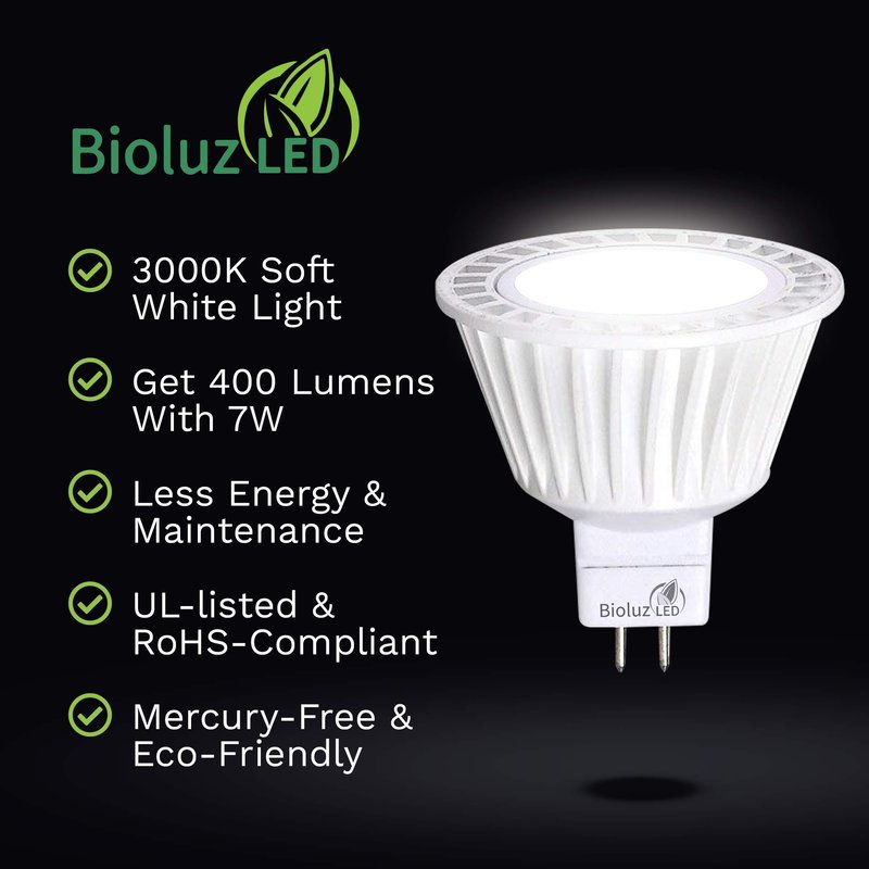Bioluz LED introduces the new industry standard with its elegant MR16 series light bulbs. Standard GU5.3 base (2 pin) with halogen light quality and color. Bioluz LED offers beautifully styled lamps for your home, office and landscaping. Crisp and bright, Bioluz LED high performance lamps offer aesthetically pleasing designs combined with quality and energy efficiency. Now for the first time, add Bioluz LED energy efficient LEDs to your home or yard while maintaining the cosmetic beauty, brightness and color you've come to love.