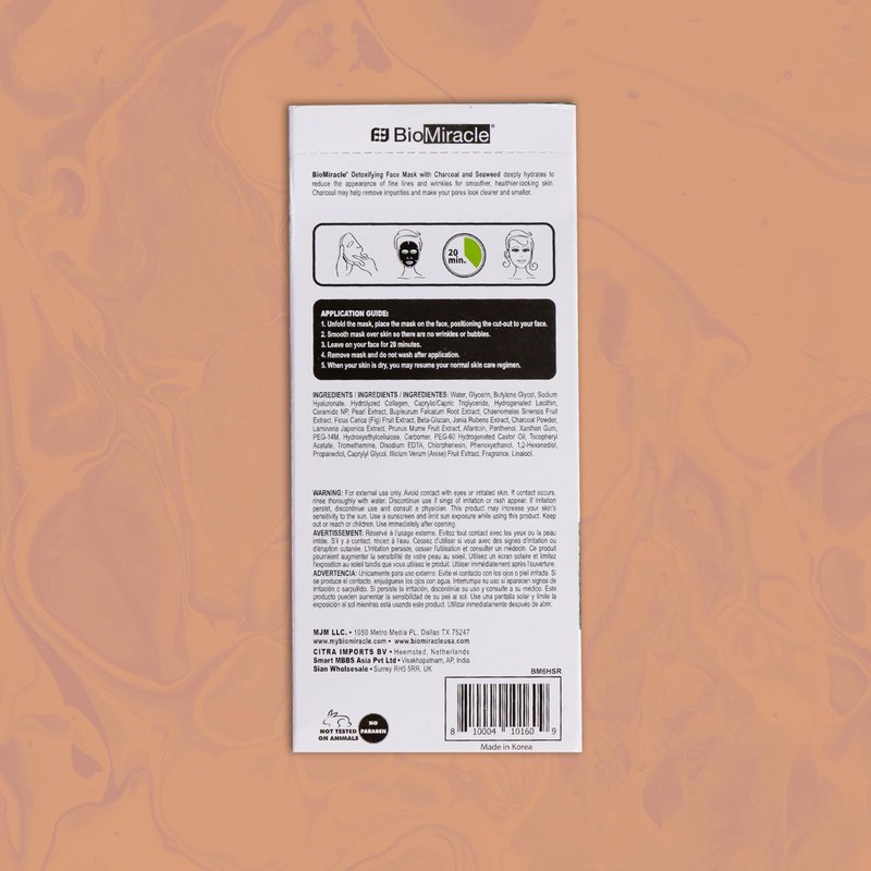 BioMiracle Detoxifying Face Mask with Charcoal and Seaweed deeply hydrates to reduce the appearance of fine lines and wrinkles for smoother, healthier-looking skin. Charcoal may help remove impurities and make your pores look clearer and smaller. The seaweed in the mask tightens skin and causes a natural glow thanks to it's vitamins and minerals. The detoxifying mask cleans pores and reduces their appearance for a clean, healthy-feeling face. Take care of your skin without chemicals, as these masks have no parabens and are non-GMO. Masks can be used with all skin types. Pack of 5.