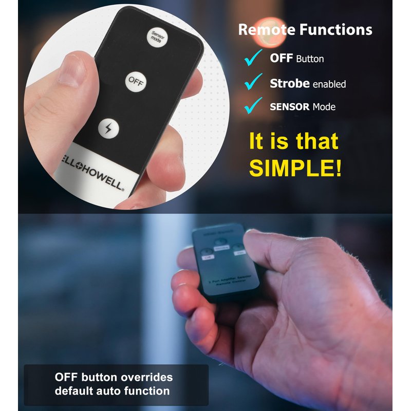 - 𝗪𝗶𝘁𝗵 𝗥𝗘𝗠𝗢𝗧𝗘 𝗖𝗢𝗡𝗧𝗥𝗢𝗟: 3 easy-to-understand buttons: STROBE, Sensor Mode, and Off. Select Sensor Mode to enable auto On/Off feature. Selecting Off will override automatic function.