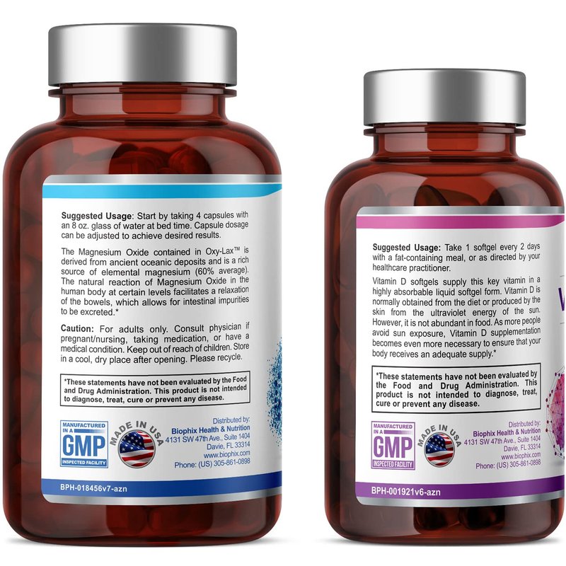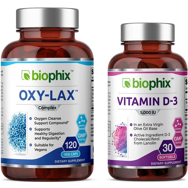 biophix Oxy-Lax 750 mg 120 Vcaps - Free Vitamin D-3 5000 IU 30 Softgels - Natural Magnesium Oxide Oxygen Based Colon Cleanse Gentle Laxative Supports Healthy Digestive Tract Regularity