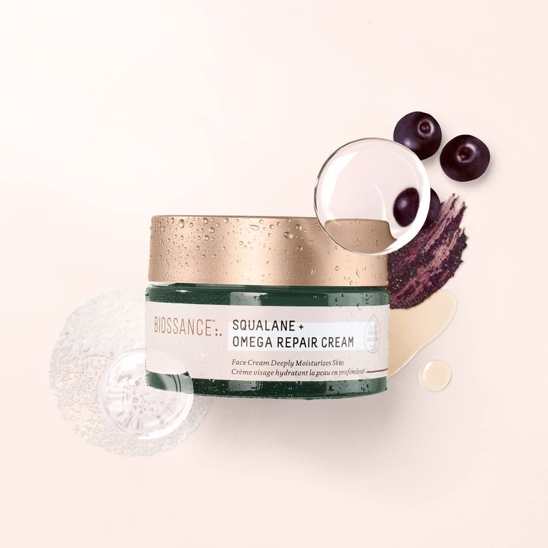 BIOSSANCE Squalane + Omega Repair Cream. Rich Moisturizer with Hyaluronic Acid and Ceramides to Hydrate, Plump and Smooth Skin. Nourish and Improve Fine Lines