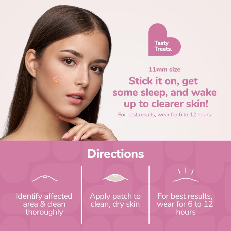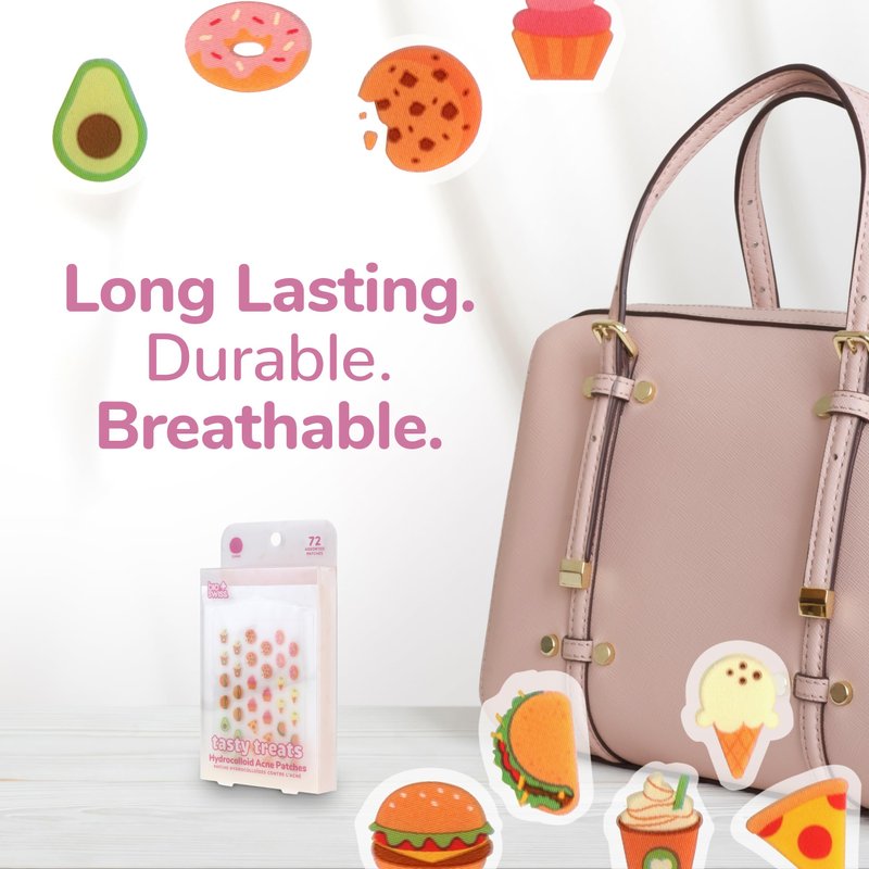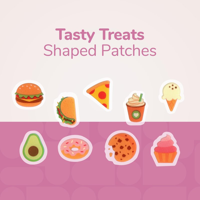 - TASTY TREATS ACNE PATCHES: Tackle zits and blemishes effectively and achieve clear and smooth skin with our Tasty Treats Acne Patches. Our patches for pimples come in 9 cute and adorable assorted styles: Avocado, Pizza, Cupcake, Taco, Ice Cream, Burger, Donut, Cookie, and Coffee