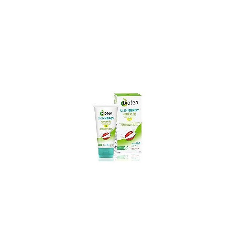 It is enriched with:. - 100% natural extract of Goji Berry, called the "happy berry", which helps increase energy, vitality and strength and protects the skin from premature ageing. - Moisture Plus, a unique combination of moisturizing agents and natural bio-polymers, having a double function: it acts both as a protective film on skin's surface and as a hydration reserve in epidermis. It offers your skin immediate hydration that lasts up to 24h. - SPF 15 to protect your skin from UVA/UVB radiation. - Dermatologically Tested/ Paraben-Paraffin-Colorant free. Description: bioten Skinnergy refresh it! for normal/mixed skin is a powerful moisturizer, which provides your skin the optimum hydration! Its pleasant, light cream texture revives your skin immediately like energy blast and it is absorbed fast!. Directions: Apply every day on cleansed face and neck. Due to contained UV filters avoid contact with eye area. Key ingredients: Goji Berry extract