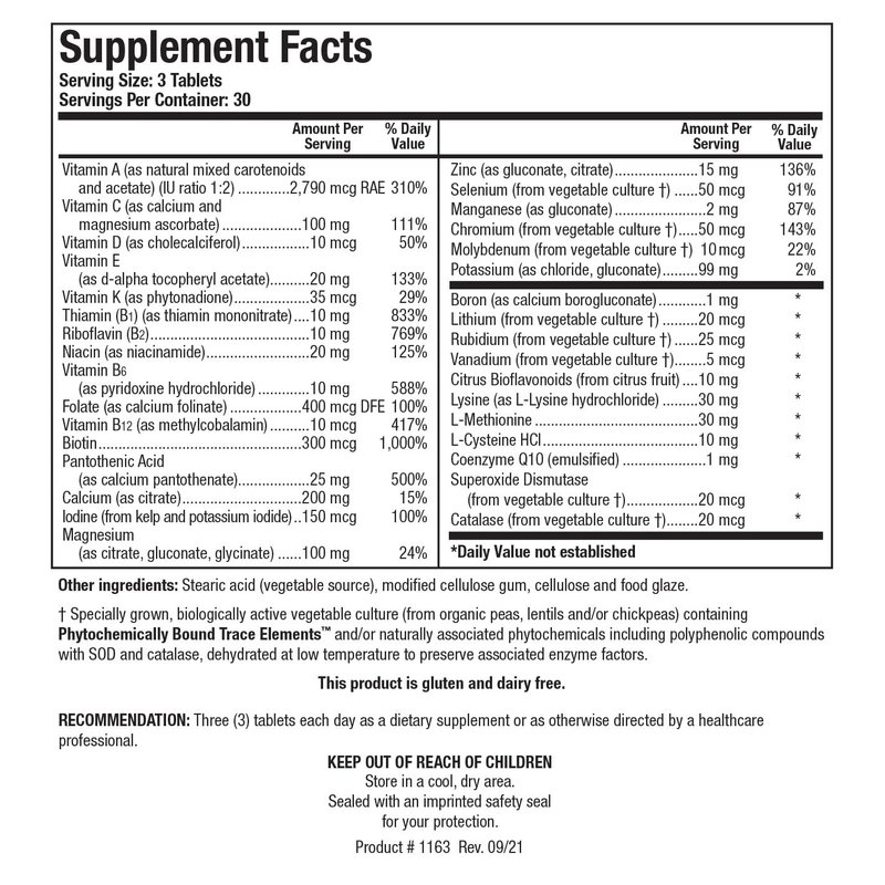 - FORTIFY YOUR DIET: It’s difficult to meet all of your nutritional needs through food alone; A combination of poor diet, insufficient digestion, use of medications, poor soil quality and overly processed foods can result in nutritional deficiencies; Supplement with Bio-Multi Plus (Iron & Copper Free) to help meet the daily requirements