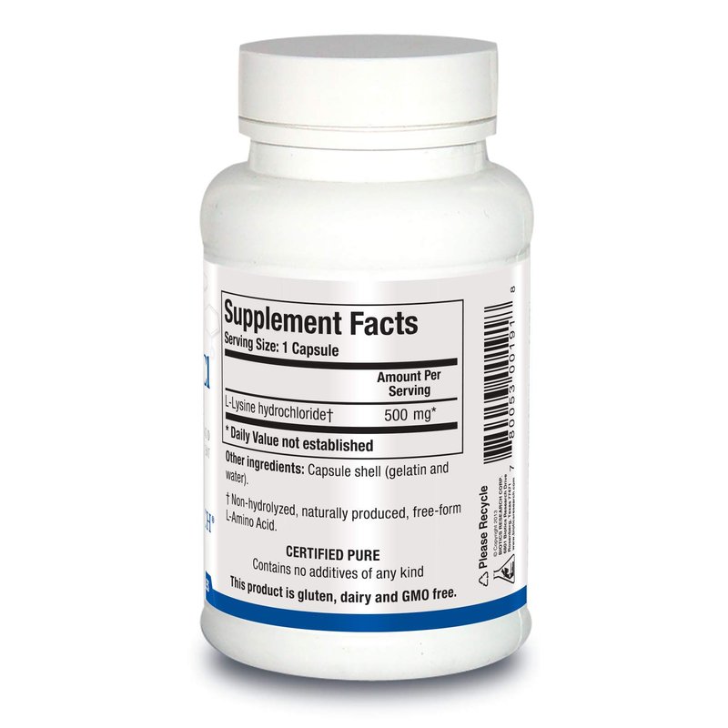 Biotics Research L Lysine HCI Amino Acid L lysine Supplement Promotes Energy, Boosts Immunity, Stimulates Calcium Absorption 100 Capsules