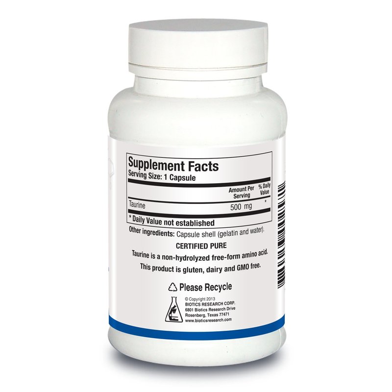 Biotics Research Taurine – 500 mg Taurine, Amino Acid, Brain Health, Cardiovascular Health, Antioxidant. 100 Capsules.