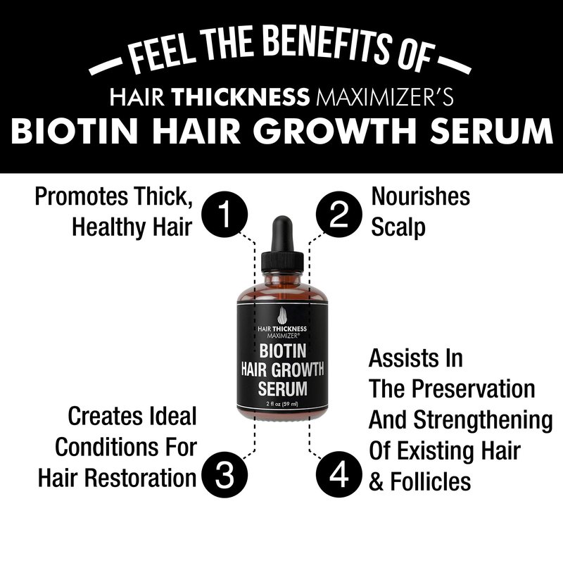 - Most hair growth oils and serums use harsh, unnatural chemicals. Hair Thickness Maximizer focuses on Biotin along with high quality ingredients that work to nourish, revitalize and protect your hair. See and Feel the difference!