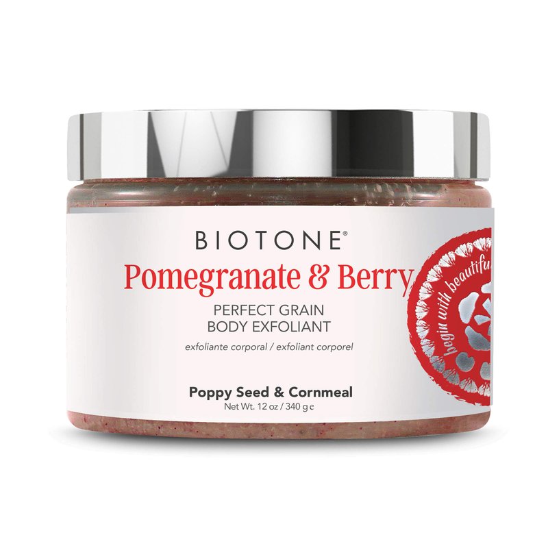 BIOTONE Perfect Grain Body Exfoliant with Gentle Cornmeal Grains, Poppy Seeds, and Apricot Seeds, Inspired by Nature, Infused with Botanicals and Deep Moisturizing Ingredients, 12 oz.