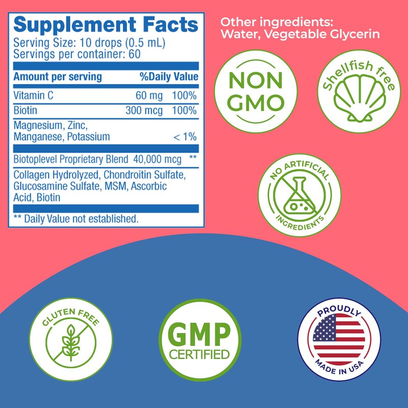 - ✅ SEVEN OF THE MOST EFFECTIVE AND ESSENTIALLY SUBSTANCES (Glucosamine, Chondroitin, MSM, Hyaluronic Acid, Collagen Hydrolyzed, Biotin, Vitamin C) in an easily absorbed liquid form for supporting the good health of joints, bones and muscles; increases skin firmness and hydration. The formulation have anti-aging properties, improves skin elasticity and skin moisture. This product combination also supports the strength and growth of hair and nails. Thickens fine hair.