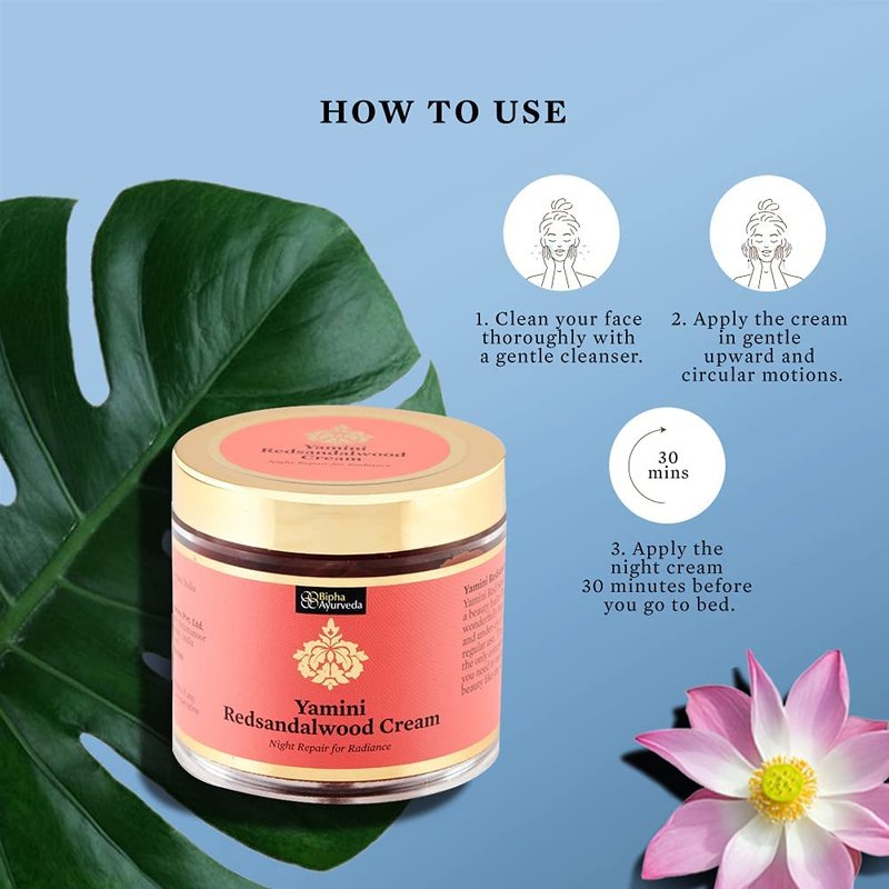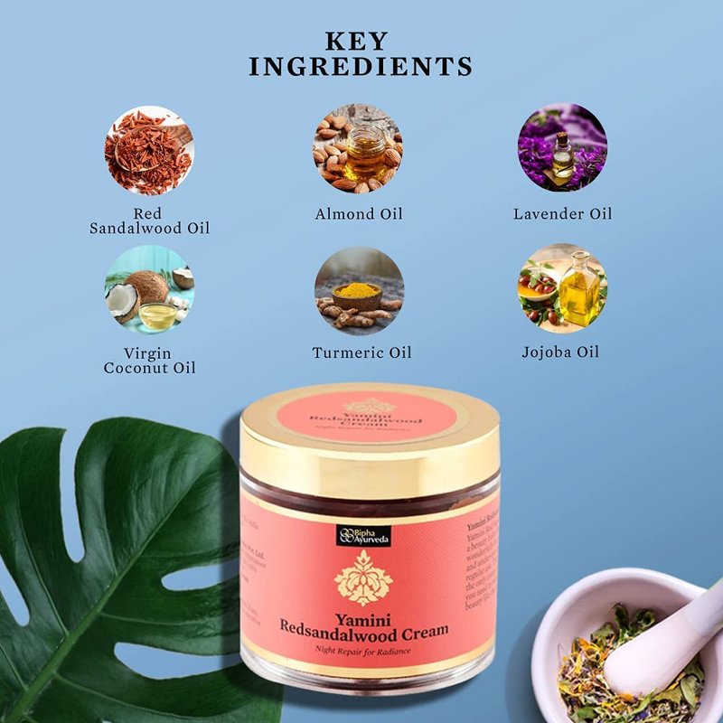 - Yamini Red sandalwood cream is a beauty balm and night repair cream with natural ingredients that helps he moisture in the skin and also nourishes it