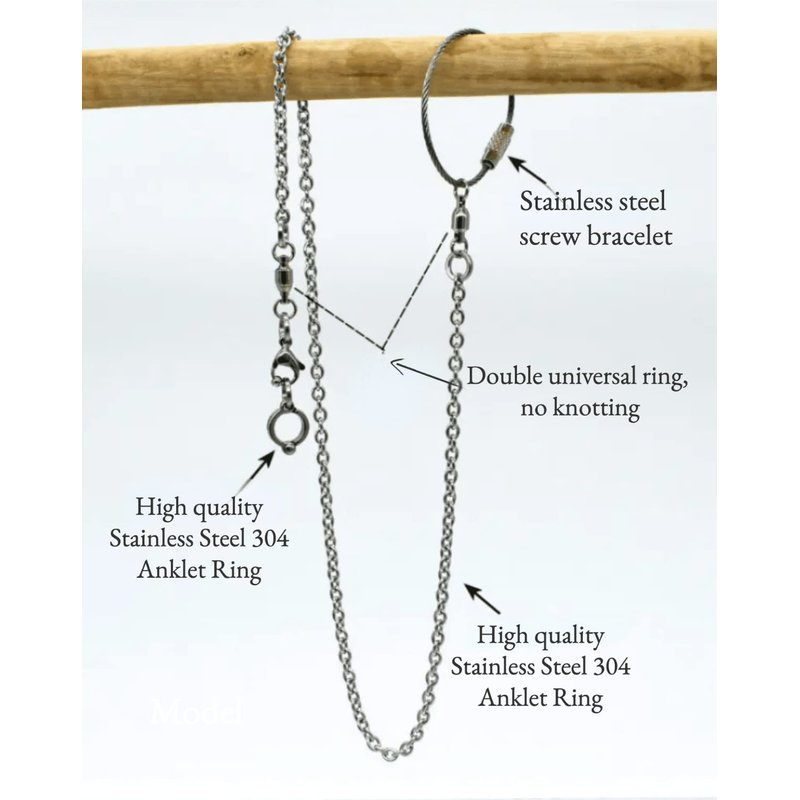 1 x Foot Chain, 1 x Alloy Whistle, 2 x Alloy Connecting Rings