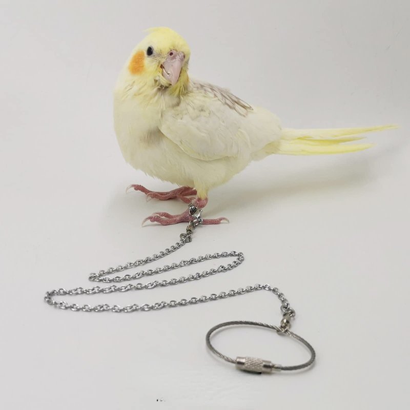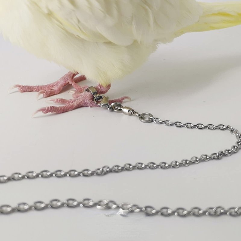 - ?Reasonable Design?The chain has a rotating clasp that allows birds to move freely. The reinforced chain and foot ring can adapt to all kinds of parrots, and also suits for the large size.Our design is reasonable and safe to use, it will not harm the legs of the birds and allow them move freely, a useful tool for bird training.
