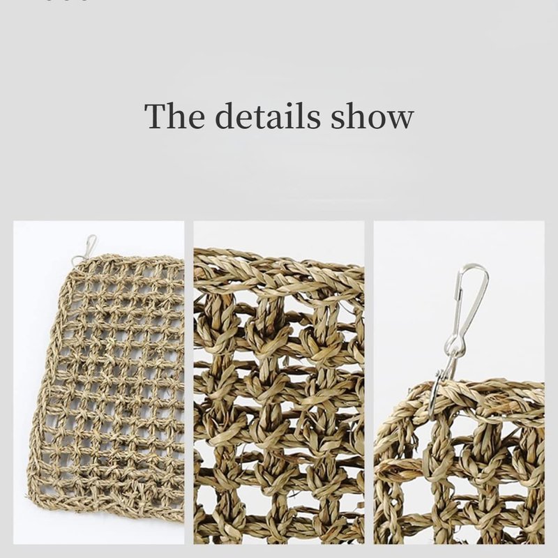 3.Activity wall is a fun to chew grid of seagrass for your bird to hang out on. The wall is decorated with colored plastic chain,colored wood, will attract your bird's attention and interest.