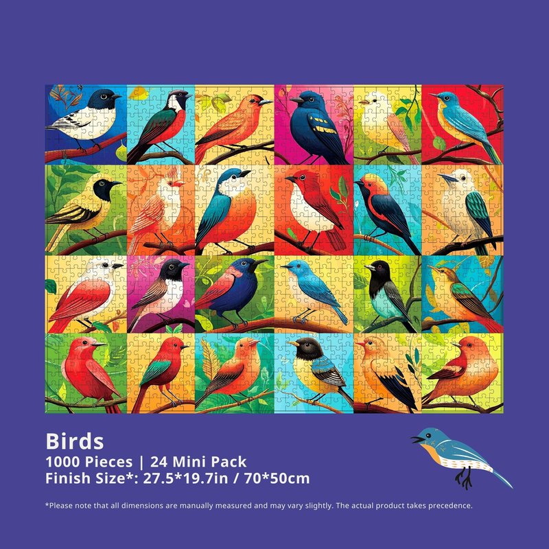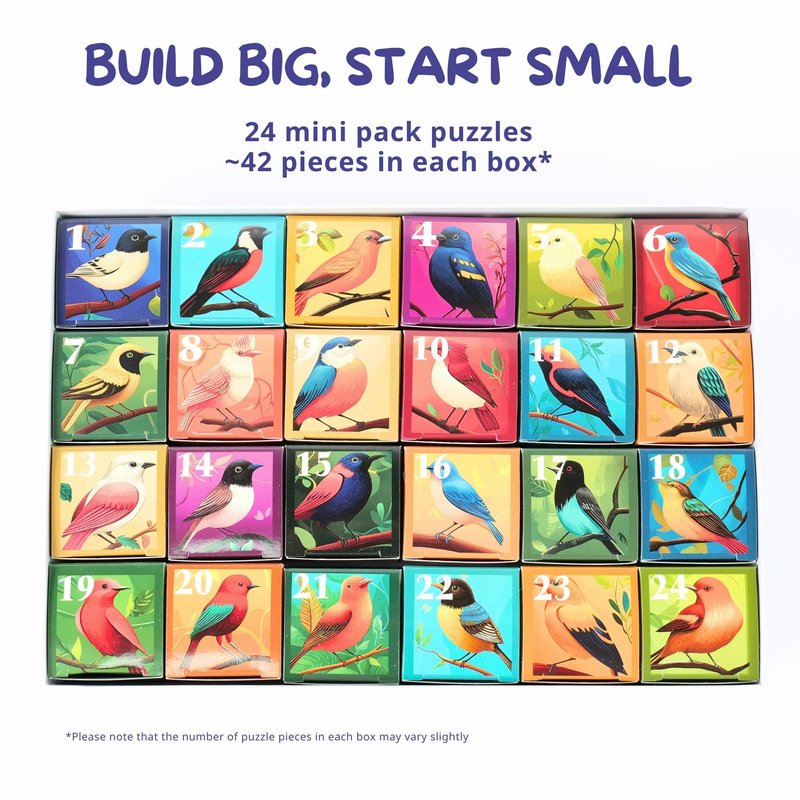 Birds, 24 Mini Pack Kids Educational Puzzles, 1000 Pieces Puzzles, Advent Calendar 2024, Individual Puzzles, Kids Puzzles, Challenging Puzzle Perfect for Adults, Family Game Nights, 27.5 * 19.7 in