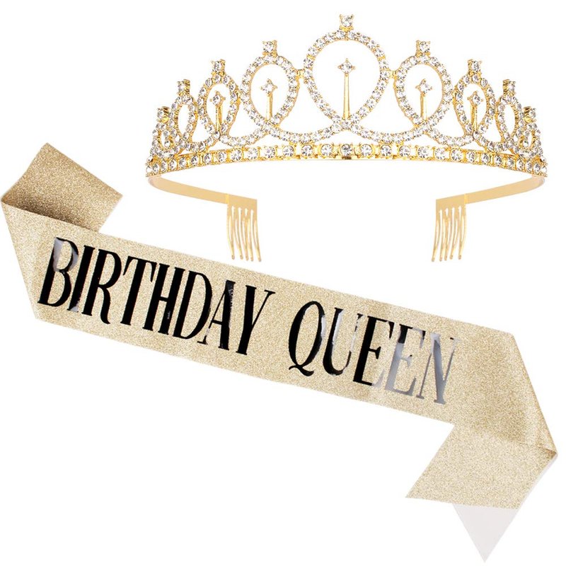 - BIRTHDAY QUEEN Sash + Rhinestone Tiara Gifts Set.Every girl deserves to feel like a princess/queen on her important occasion. It will make your dream come true.