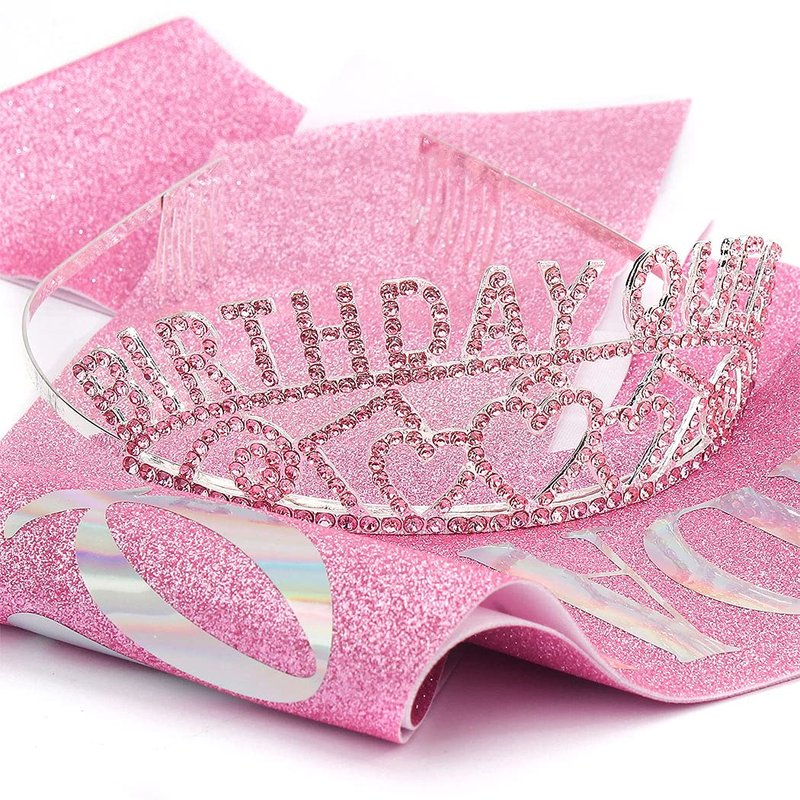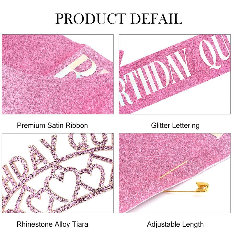 - High Quality: Birthday Crown made of alloy with glitter crystals, it looks shinny, will make you more beautiful and eye-catching. Birthday Sash made from pink glitter fabric, apply to any outfit and durable enough.