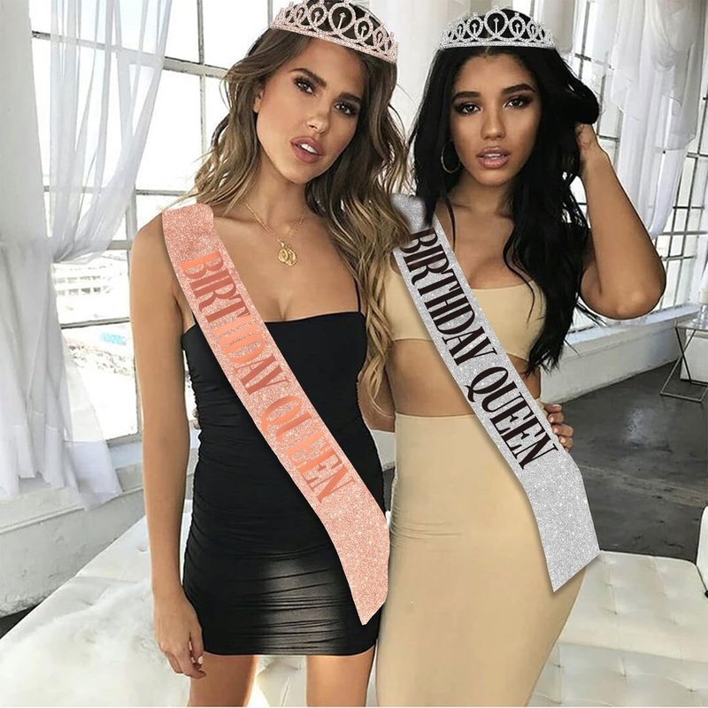 - 🎁BIRTHDAY SASH FOR WOMEN: Our silver birthday queen sash is made of high quality silver glitter satin with foil lettering. Birthday sash does not tear or wrinkle easily. It is in 63 inches length and comes with a pearl charm pin that can easily adjust the length you need. Suit for any outfit and looks great on photos. Loved by any age women and girls. It’s a perfect photo prop. Princess and queen style photos can be taken at any time.