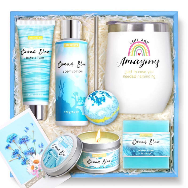 Birthday Gifts for Women, Ocean Scented Spa Gifts for Women 7 Luxury Self Care Gifts for Women, Gift Basket Care Package for Women Her Wife Mom Friends Female Bff