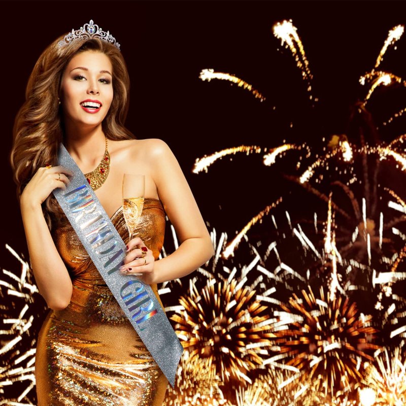 - 🎁CELEBRATE WITH STYLE - Get the glimmer of glitter without the mess with this dazzling Birthday Sash! This silver double face satin sash reads "BIRTHDAY QUEEN" in Silver Glitter! Exactly as pictured! Our silver birthday sash and tiara looks great on Instagram :) Just add cute nails, champagne, maybe a pool, and you've got the shot!