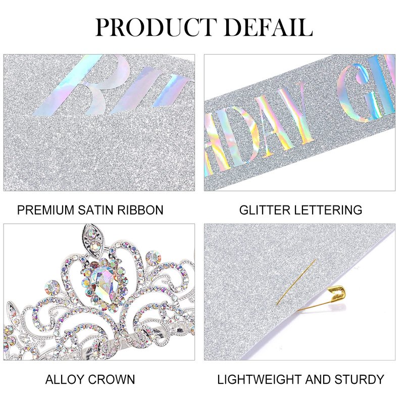 - 🎁FOR THE BIRTHDAY GIRL- It's your special day and we want you to look AMAZING! Our SILVER TIARA + BLACK LETTER GLITTER SASH will compliment any outfit while making sure you're the star of the show :)