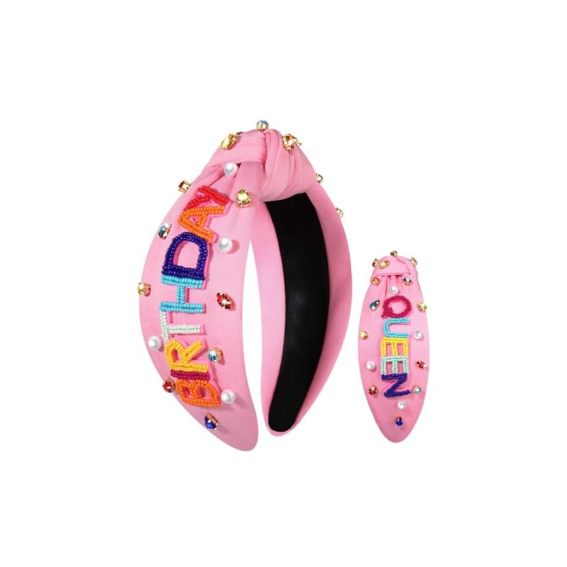 - 【Birthday Hair Accessories】: Make your birthday party unforgettable and absolutely memorable with these birthday jeweled headband! This precious pink knotted headband exudes an elegant and noble atmosphere all the time, adding a luxurious and playful touch to any outfit!! Whether your style is whimsical, subdued or classic, put down jean outfit to dress up transforming a simple black dress in birthday party, the sparkling rhinestone top knot headband will make amazing you like a princess!!