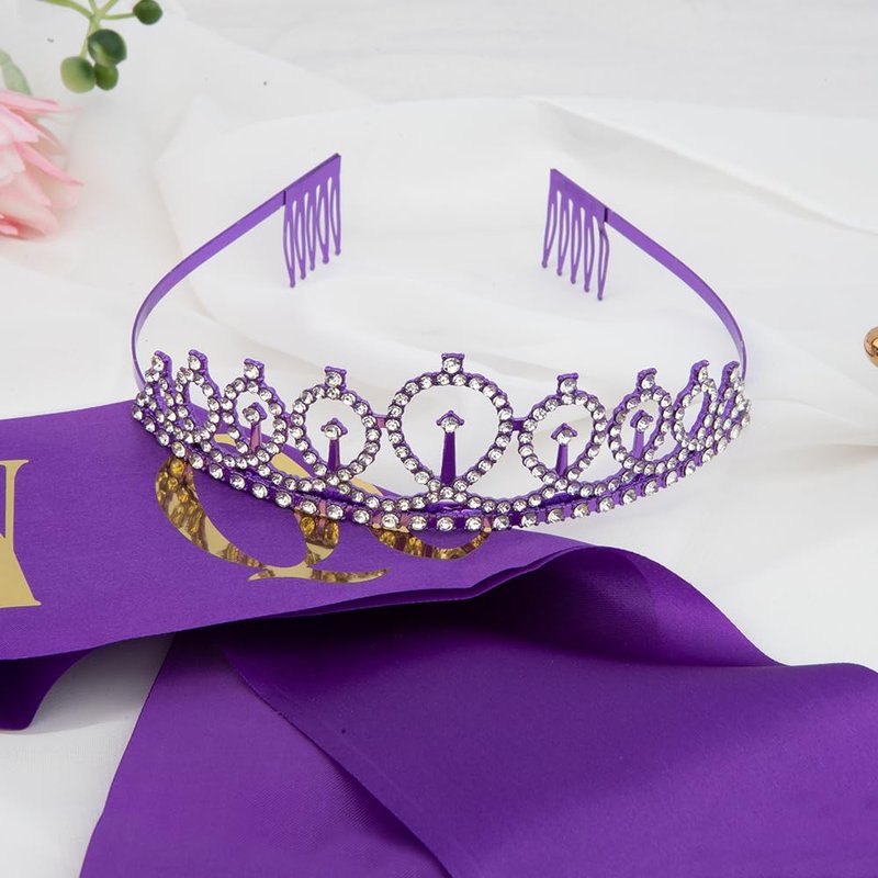 - PACKAGE CONTENT:The product includes a happy birthday crown with rhinestones,a glitter happy birthday sash for women,and a pin for adjusting the length of the birthday girl sash for women,birthday queen sash and crown are available in a variety of colors,we provide you with birthday crown and sash suitable for a variety of atmospheres to meet your multiple needs,including purple birthday decorations,gold birthday decorations,rose gold crown,pink birthday sash,black birthday sash,green tiara.