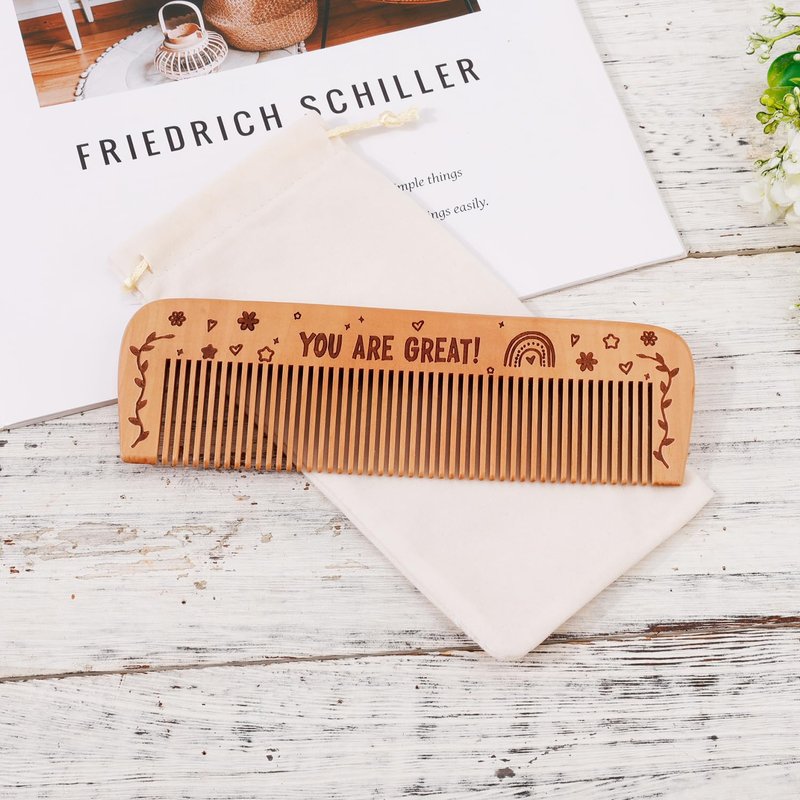 - Product Material: Our wooden labor comb is made of peach wood, with solid and round teeth, sturdy and durable. Comes with a rope bag for easy storage and carrying.