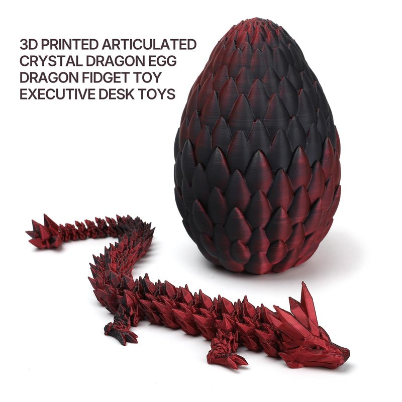 - Note:Multicolored dragons may vary in color pattern from photos due to the nature of the PLA filament when 3D printed. Includes a 12‘’articulated crystal dragon and a 5.5‘’dragon egg.