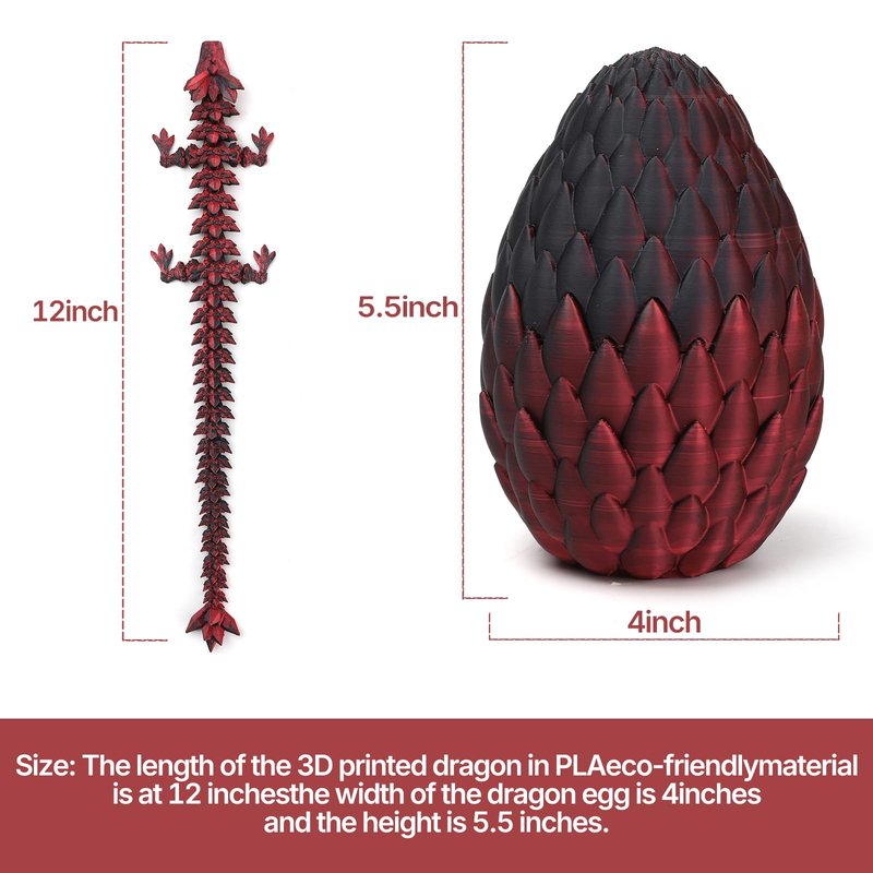 - Eco-Friendly Material: This 3D printed dragon and dragon egg is made of eco-friendly PLA material, and the complex 3D printing technology makes the dragon egg fit tightly. The details are realistic, lightweight and durable.