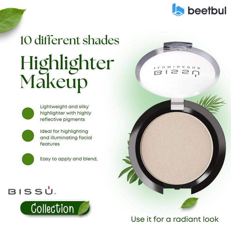 Enhance your natural beauty with Bissú Highlighter Makeup. This lightweight, silky formula with high-reflecting pigments provides a radiant glow that lasts all day. Available in 10 shades, it’s easy to apply and blend, perfect for illuminating your facial features. Ideal for all skin tones.