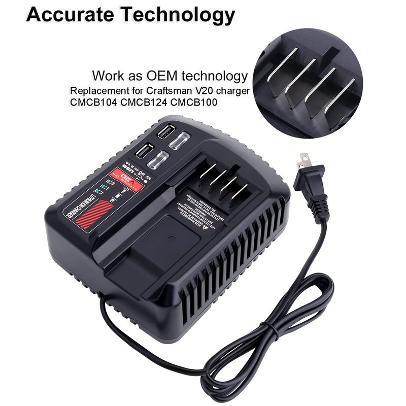 Biswaye Replacement for Craftsman Battery Charger CMCB104, Compatible with Craftsman V20 Series 20V Battery CMCB204 CMCB202 CMCB201 Power Tool Battery Charger, V20 Charger with 2 USB Ports