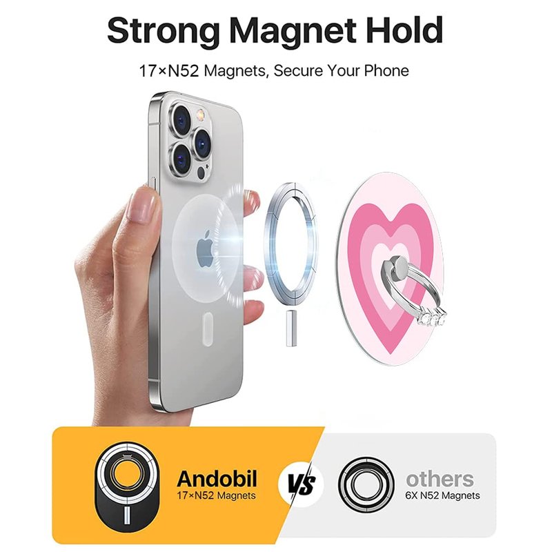 Note: Only compatible with the iPhone 12/13/14 series with a magnetic phone case (compatible with MagSafe), any item that between the magnetic ring holder and magnetic phone case all will weaken the magnetism.