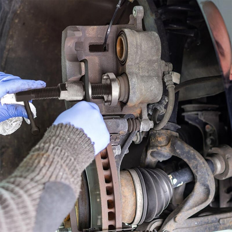 If the brake pad rust too tight to move, please do not screw it hardly, otherwise the tool will be damaged.