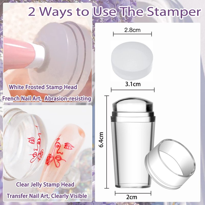 - Nail Stamper & Scraper: Extremely soft, Not easy to break, finish to pick up even the smallest details and reach the edge of most curved nails with no effort. Contains 2 different stamp heads for both French Tip and transfer manicure.