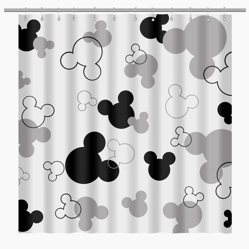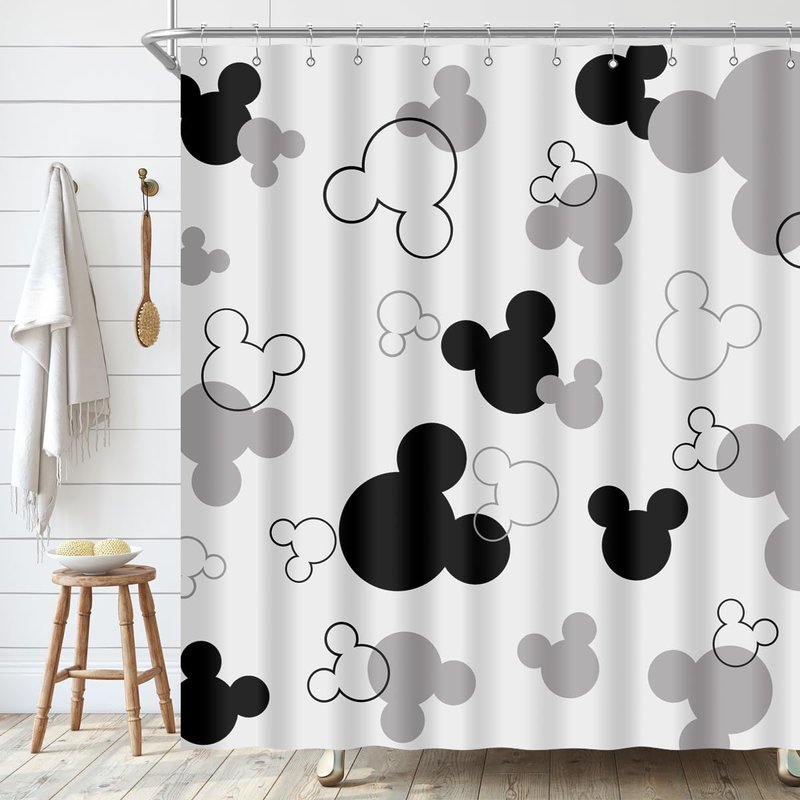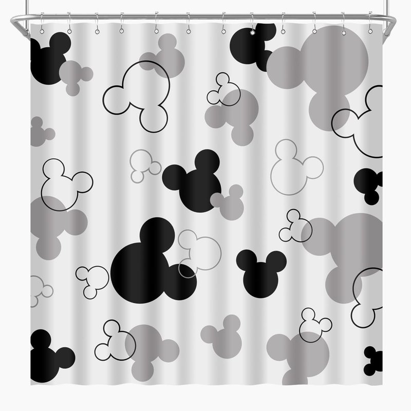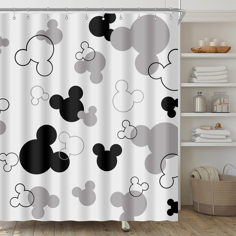 BIYSUC Mouse Head Shower Curtain Black and White Children Cartoons Kids Bath Curtain Cute Animal Grey Bathroom Home Decor Waterproof Polyester Fabric 72Lx72W Inch with 12 Pack Hooks