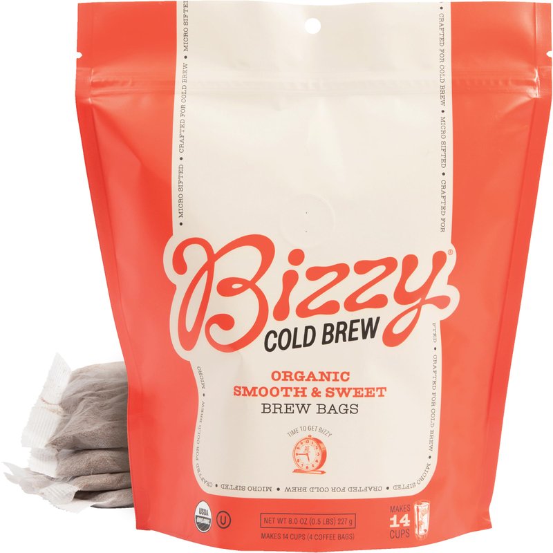 Bizzy Organic Cold Brew Coffee | Smooth & Sweet Blend | Coarse Ground Coffee | Medium Roast | Micro Sifted | Specialty Grade | 100% Arabica | Brew Bags | 4 Count | Makes 14 Cups