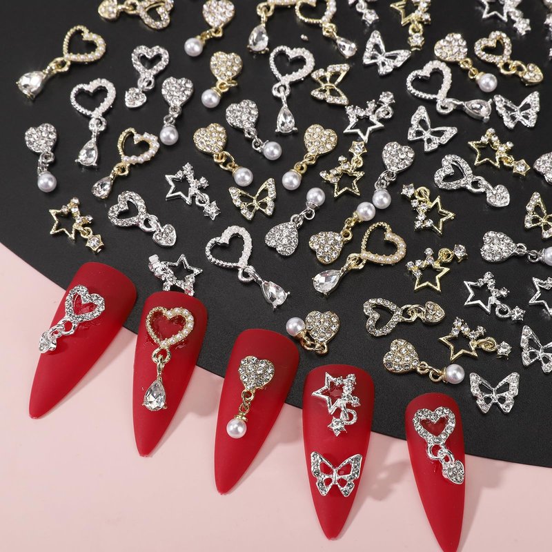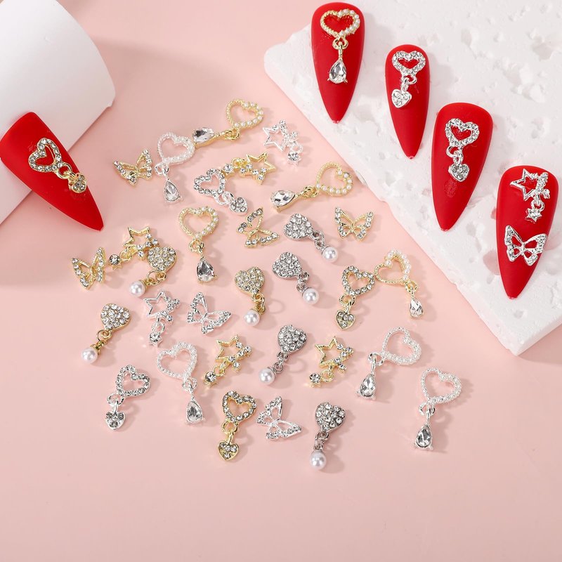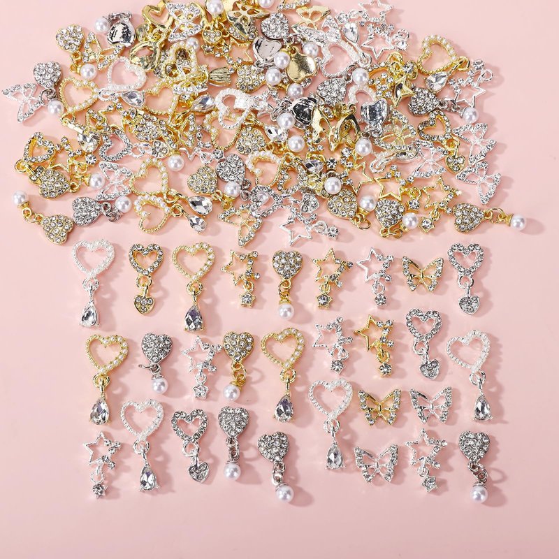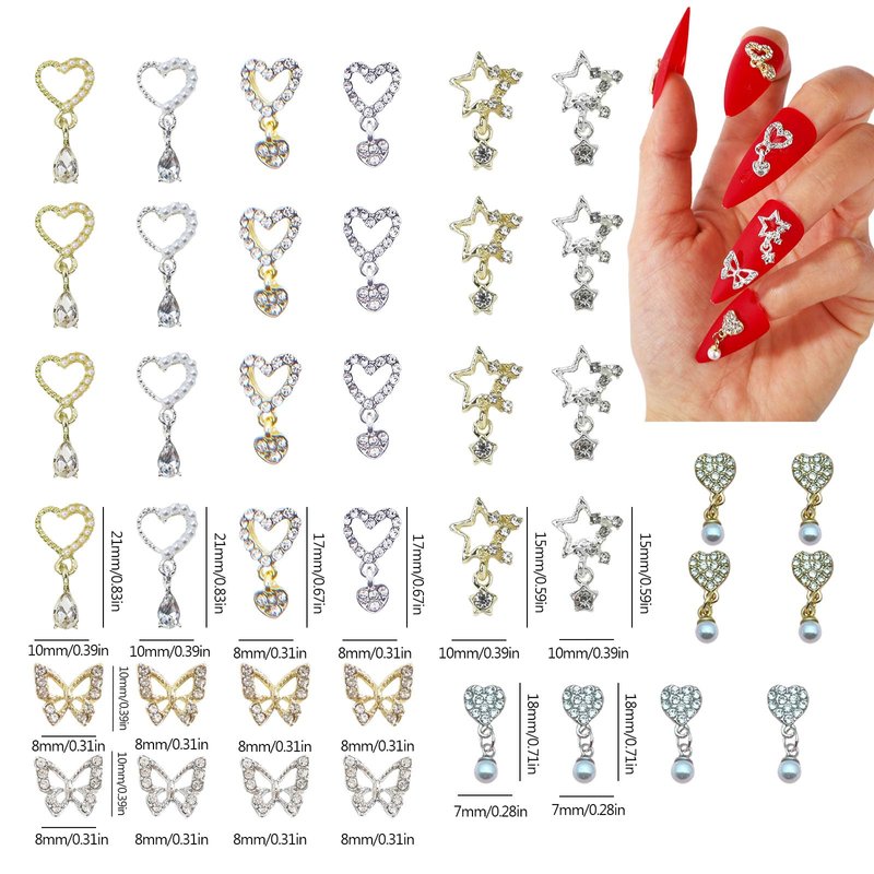 - 【Valentines' Day Nail Art Charms Kit Variety Pack】You got silver and gold nail charms for acrylic nails, with 5 different styles. Namely butterfly nail charms, love charms for nails and star nail rhinestone charms, total 40Pcs. The trendy designs, variety styles, large quantity, will let your creative juice flow for a while.