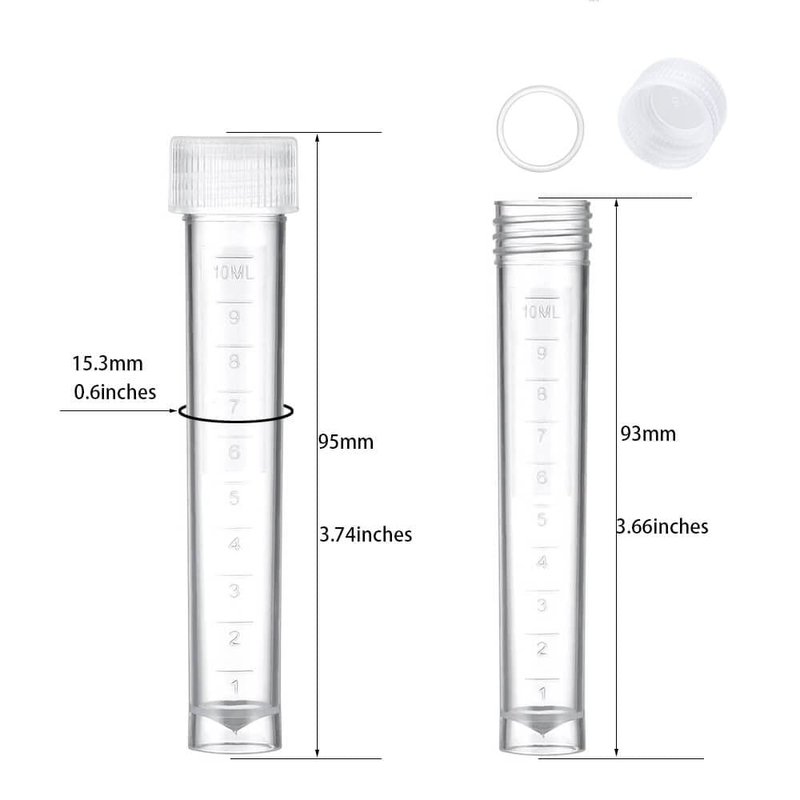 - 【Freezing/Sterilization】10ml plastic vials can store laboratory samples at a low temperature of -112°F, and can also be heated to 248°F for autoclaving.