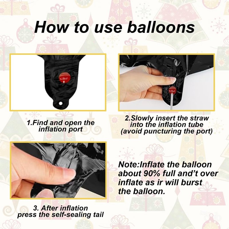 Aluminum foil polyester film material has no elasticity, so do not overfill the balloon when inflating it. Inflate it to 80% to prevent the balloon from exploding.