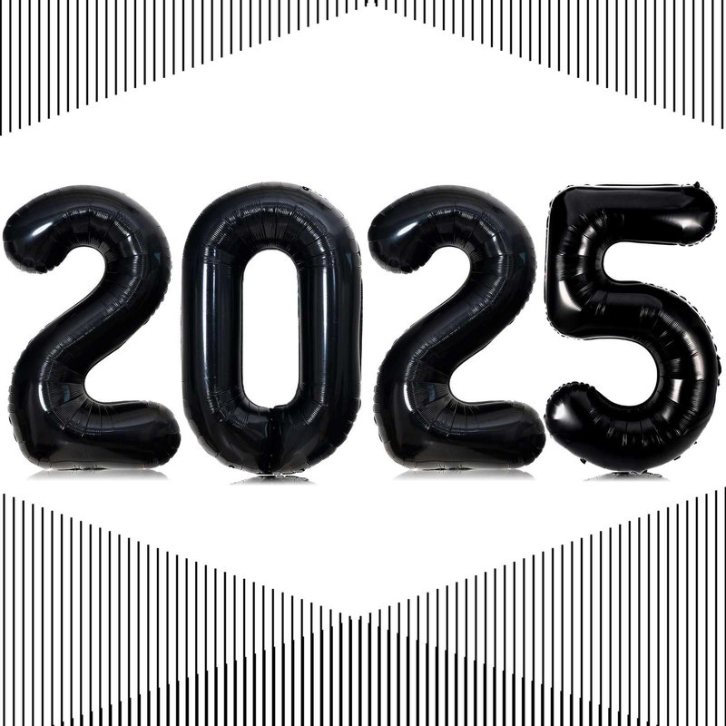 - Package Included: Big 32 INCH Black Foil 2025 Foil Numbers Balloons,1 Inflatable Straw,1 Ribbon