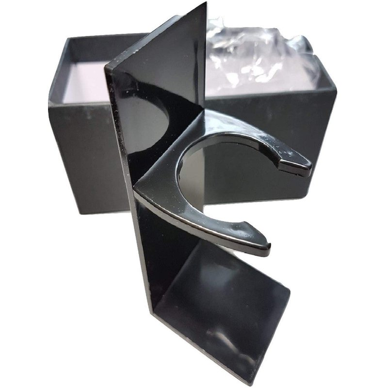This black plastic shaving brush stand is an ideal, inexpensive way to hang your brush to allow the hair to dry thoroughly. This item is free standing or can be stuck to a vertical surface via screw hole on the back. 4x10x5 cm / 3 cm diameter. Dimensions are approx.