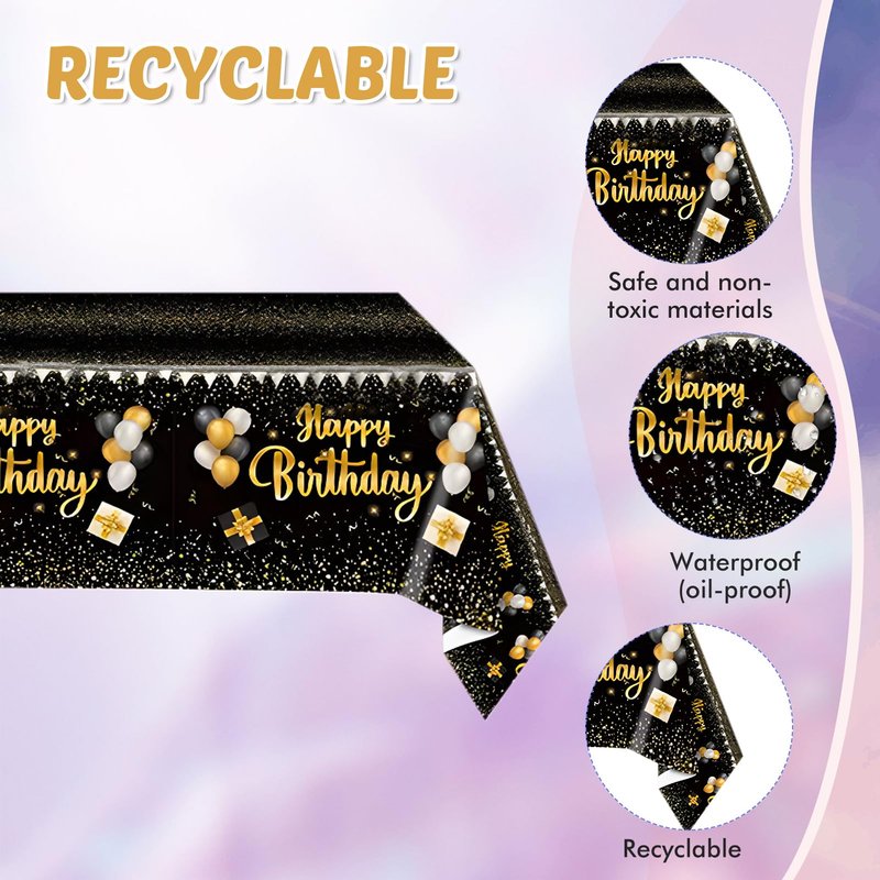 Material: the party plates and napkins sets is made of Paper, black and gold tablecloth are made of quality plastic.