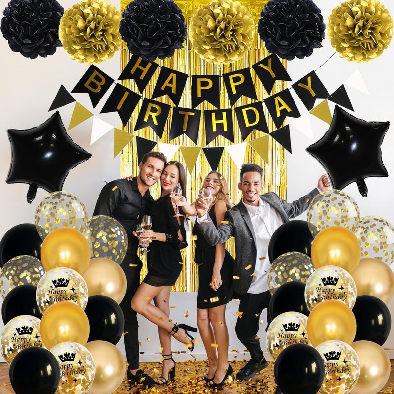 π Black Gold Birthday Decorations for Women Men Boys Girls - Create Unforgettable Celebrations
