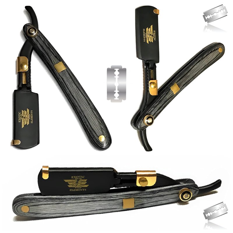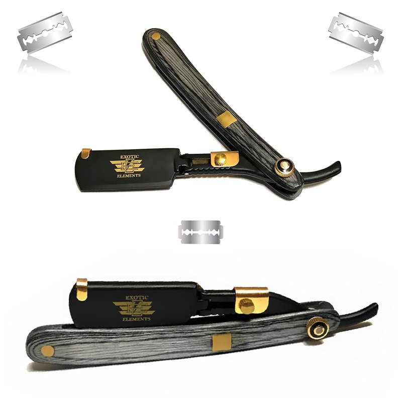 Black and Gold Straight Edge Hair Shaving Razor with Full Double Edge Blade Holder – Professional Barber Beauty Salon All Purpose Durable Shaving Razor – Cut Throat Folding Blade